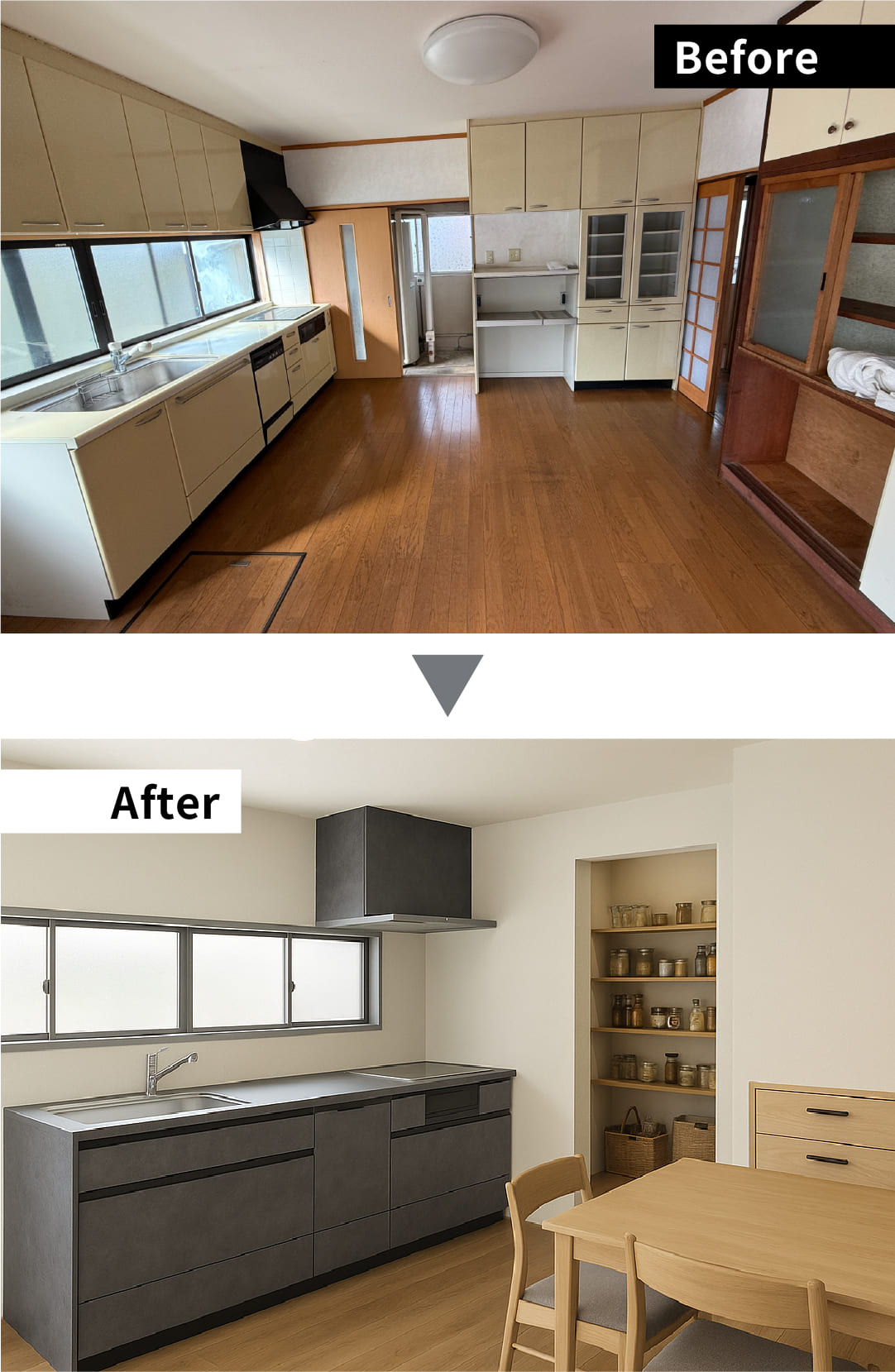 2階建ての広い戸建てを、まるで平屋のように使えるよう、1階を中心にフルリノベーションしました。