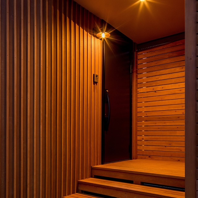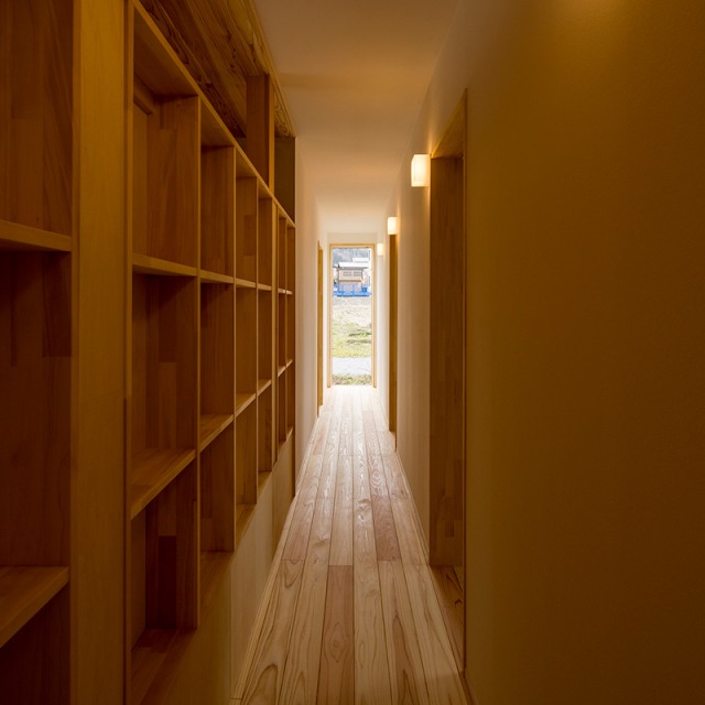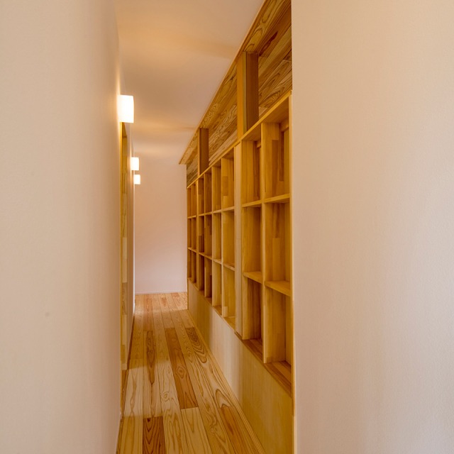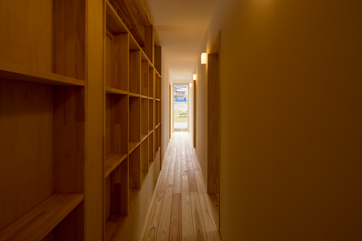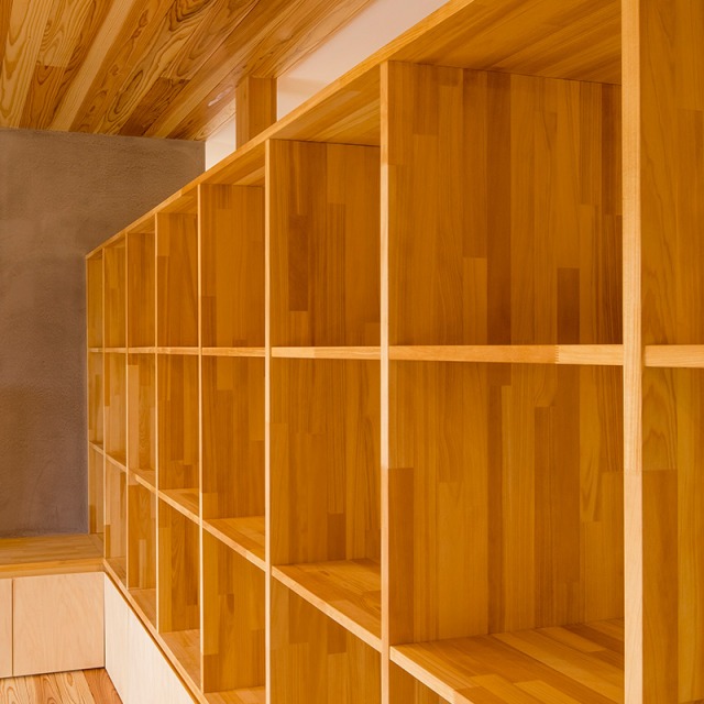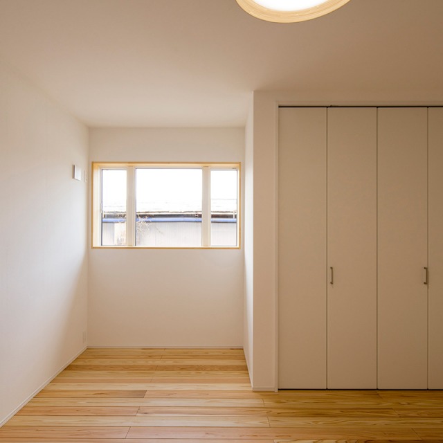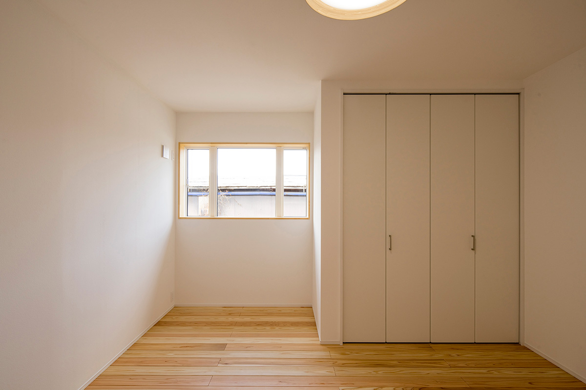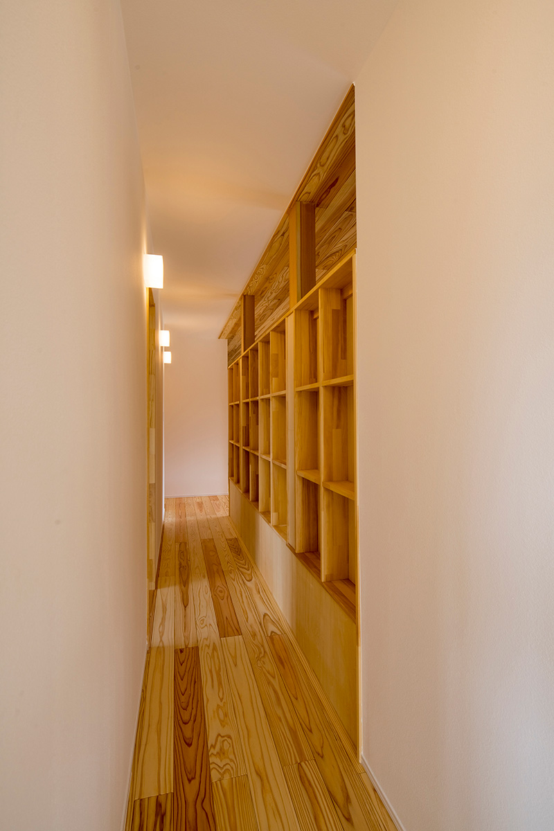 床だけでなく一部の壁にも同じ杉材を使うことで、やさしい木の香りとぬくもりが広がります。